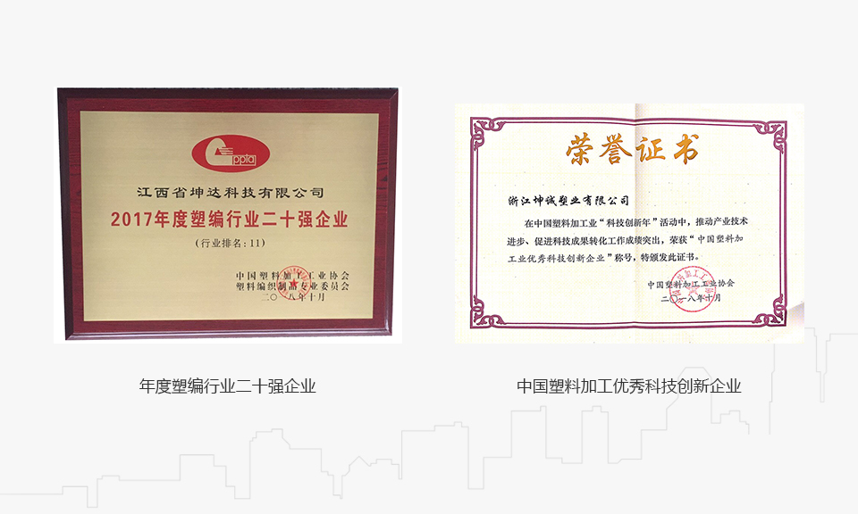 坤達(dá)集團(tuán)始創(chuàng)于2003年,是一個集技術(shù)研發(fā)、品牌運(yùn)營、規(guī)模化生產(chǎn)的塑編包裝產(chǎn)業(yè)鏈企業(yè)。旗下三大生產(chǎn)基地為浙江坤誠塑業(yè)有限公司、江西省坤達(dá)科技有限公司和江蘇坤達(dá)塑業(yè)有限公司,綜合實(shí)力榮登中國塑編行業(yè)十強(qiáng)企業(yè),其中浙江坤誠塑業(yè)有限公司獲評“國家高新技術(shù)企業(yè)”、“中國科技創(chuàng)新新銳企業(yè)”、“浙江塑料包裝企業(yè)研究開發(fā)中心”、“浙江省智能工廠(數(shù)字化車間)”、“浙江制造”團(tuán)體標(biāo)準(zhǔn)起草單位、“溫州市工業(yè)互聯(lián)網(wǎng)平臺”、“溫州市兩化融合試點(diǎn)企業(yè)”等榮譽(yù)稱號。